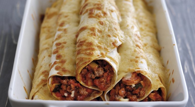 Place the stuffed tortillas neatly into a dish, lavish with cheese and bake for about 15 minutes until gooey and golden.