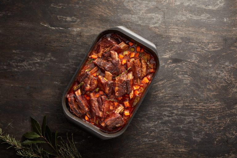 1. Preheat oven to 180°C / 160°C fan / Gas 4. Season the ribs with salt and pepper. Heat a frying pan and add the oil, then add the ribs and brown, sealing all surfaces. Transfer to a roasting tin or large casserole dish (you can also cook these in slow cooker on low for 6-8 hours).